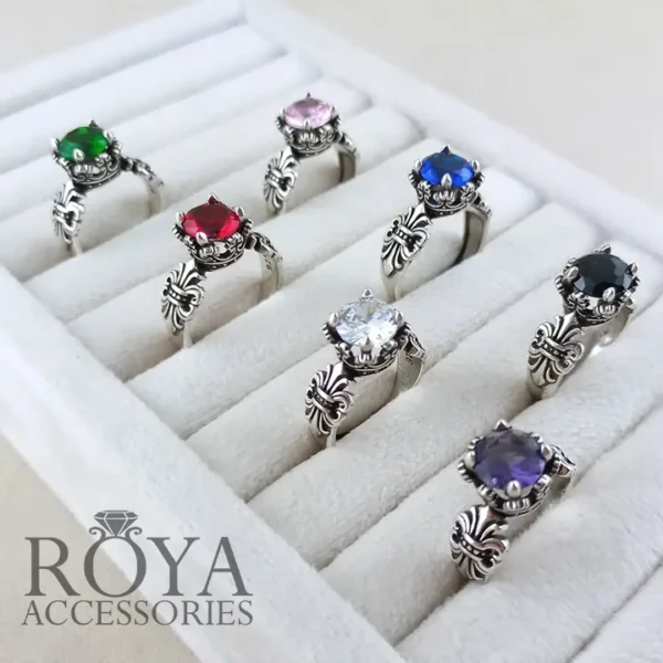 اگه دنبال انگشتر تکنگین هستی که هم چشمگیر باشه هم شخصیتتو نشون بده، این مجموعه دقیقاً همون چیزیه که دنبالش بودی. هر رنگ یه داستان داره؛ از شور و حرارت قرمز تا آرامش بنفش، از وقار مشکی تا درخشش سبز زمردی. هر سنگ طوری تراش خورده که نور رو مثل جواهرات کلاسیک بگیره و رکاب طرح کرومهارتز هم کاری میکنه که انگشترت، مثل یه اثر هنری روی دستت بدرخشه.