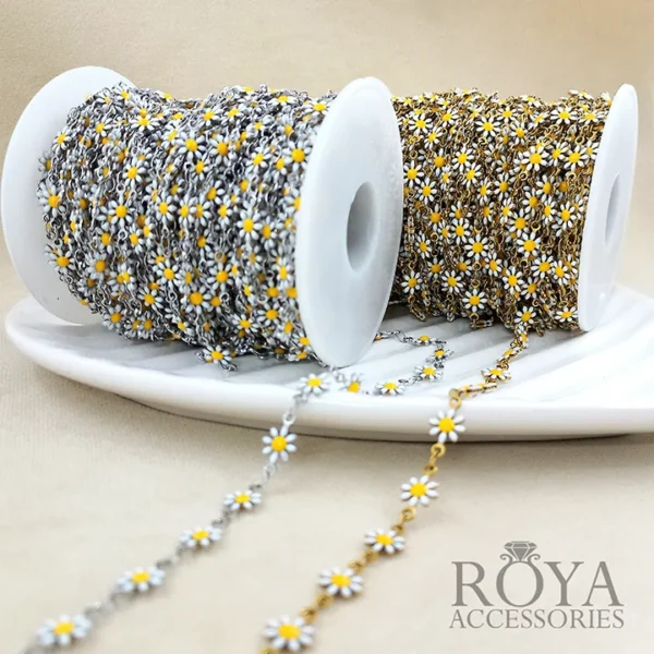 زنجیر بابونهای استیل، انتخابی شیک و دخترونه برای ساخت دستبند، پابند و گردنبندهای خاص و پرفروش 💛🤍