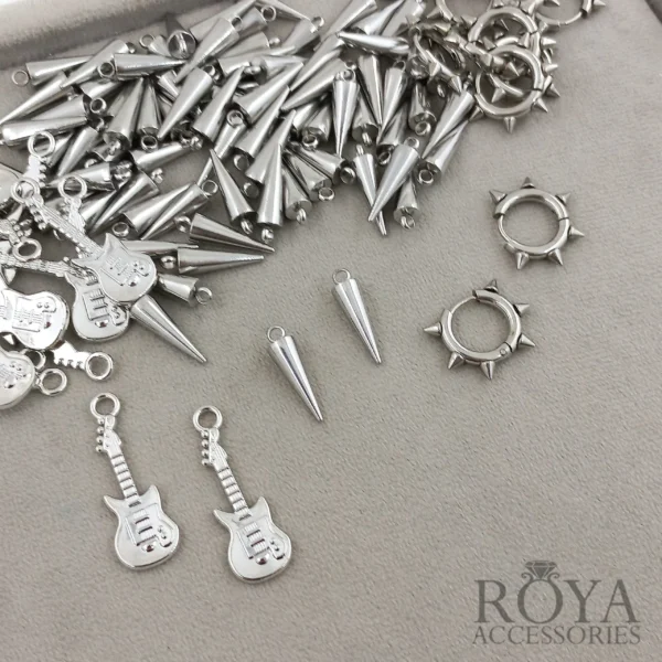اگه دنبال اکسسوری‌هایی هستی که با یک نگاه قدرت و شخصیتت رو نشون بده، این پلاک‌های استیل اسپایک، آویزهای گیتار و همین‌طور گوشواره‌های اسپایک دقیقاً همون چیزین که دنبالش بودی.