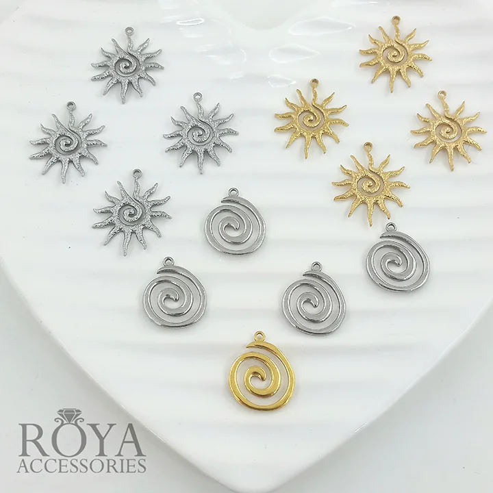 - پلاکهای اسپیرال دایره و خورشید، مناسب ساخت گردنبند و اکسسوریهای دستساز با حس بوهو و انرژی مثبت 🌞🌀